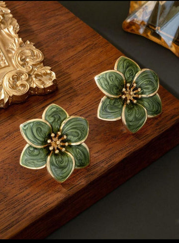 1 Pair Handmade Cute Floral Dangle Earrings, Green Layered Flower Design, Suitable For Dates And Vacations