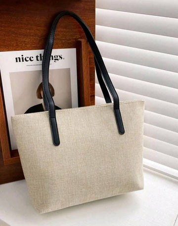 1pc Beige Nylon Smooth Zipper Letter Print Tote Bag, Fashion Versatile Casual Commuter Tote Handbag, Suitable For Ladies' Daily Use