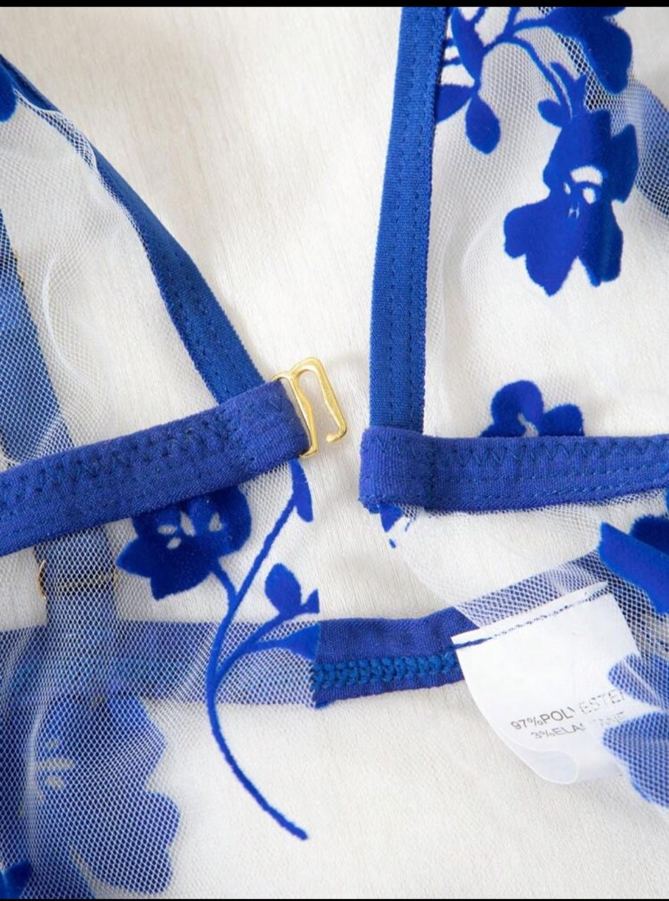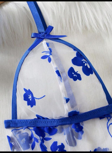 2pcs Women Sexy Floral Print Mesh Front-Closure Pajama Set, Sensual Lingerie Set For Valentine's Day, Date Night, Holiday Parties